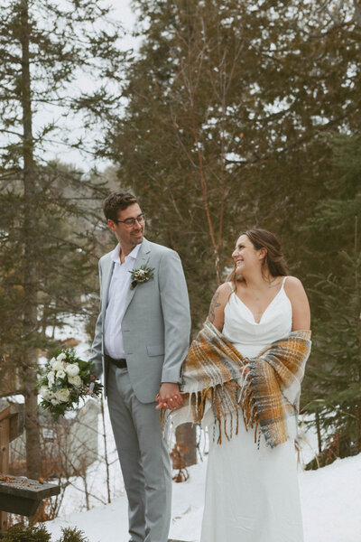 A: You don't need to hike in your dress or suit if you don't want to! Although, it makes for some pretty epic photos! You can pack it in a garment bag and attach it to your pack. If you feel uncomfortable changing behind a tree, I can bring a pop-up tent for you!